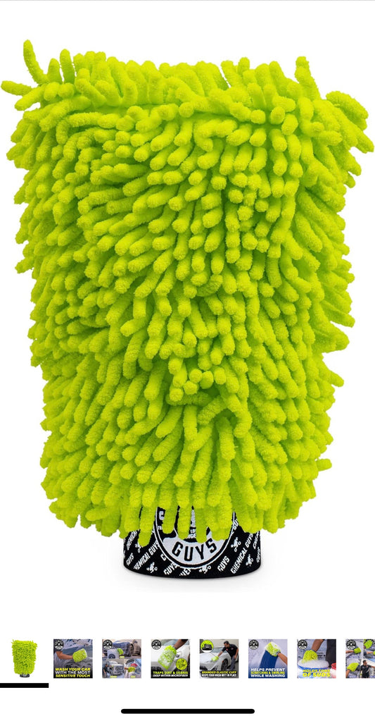 Chenille Premium Scratch-Free Microfiber Wash Mitt, Lime Green, 9.6" x 2.3" x 7"